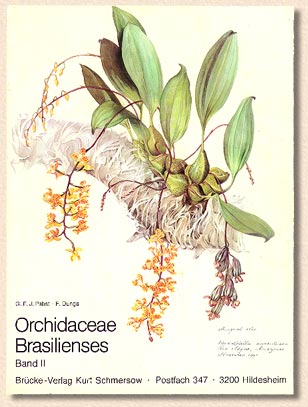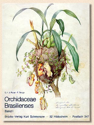 | Returning to the past in the literature concerning the Brazilian species, we found as the first global work on Brazilian orchid the monograph by Alfred de Cogniaux, in Flora Brasiliensis of Martius. This monograph had Barbosa Rodrigues as collaborator who even provided his drawings and watercolors. Then, we found the studies done mainly by Rolfe, Porsch, Kraenzlin, Schlechter, Loefgren, Hoehne, Brade. Paulo de Campos Porto and Alexandre Curt Brade published a index of the new species and modifications occurred between 1907 and l932. Later Brade and Pabst updated this index until l950. In the decade of 40, the first four volumes of Flora Brasilica, by Frederico Carlos Hoehne, have been published, a mark in the Brazilian literature about orchids. Those works included almost the half part of all Brazilian Orchids. The aim of this work was to update Flora Brasiliensis, by Martius. The other volumes would be organized by Guido Pabst, Brieger and Bicalho, but, unfortunately, Pabst passed away before it. However as the aim was to present a global work to represent all orchids of the country and as there was a great number of detached publications about this subject, Pabst bequeathed us "Orchidaceae Brasilienses", in two volumes written with F. Dungs, in l975. |