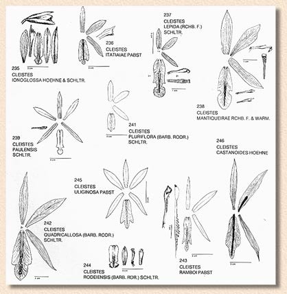 The Orchid Review, Orchid Digest and some others. His first works dated from l950: "Collecting orchids in Rio Grande do Sul", ORQUIDEA 12(4): 138-142 and "Notes about Polystachya estrelensis" , ORQUIDEA 12(5): 167-169 and this intensive activity went on until l980, on the eve of this death when he had at about 200 articles already published. According to his own definition, since he was very young, he had an innate inclination to systematic and could not just accept the names, he always wanted to know why a plant was Laelia, Cattleya or Brassavola. He could perfectly accept that many of his fellows could not understand his inclination to examine flowers, sometimes microscopic, to study its morphology, to compare one species to other, to establish genetic and specific differences. Pabst was greatly concerned about studying the species less known having in view to elucidate those considered critical and those which have almost just botanical interests as the great number of Brazilian orchids. For this, he made his studies using typus, isotypus and old collection obtained with the collaboration of the Botanical Institute of the State of São Paulo, as well as the Department of Botany of Natuurhistoriska Rijmuseet of Stockholm, Sweden. In an article published in the magazine Orquídea (July-August l950) he discoursed on "the little area of action of my excursions and the exiguity of the time available for this activity.". In spite of this statement, there are reports of the botanical journeys he did through the country, as that he did to Minas Gerais, besides those he did to his home state, Rio Grande do Sul. He used his spare time to do excursions in the woods of the surroundings woods of Rio de Janeiro city and in l950, he succeeded in gathering at about 500 species and different varieties. |