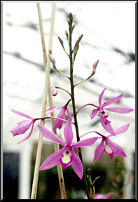 | In the greenhouse, in the octagonal part, some exotic species grow very well, with good blooming, such: Arundina graminifolia, Renanthera sp, Vanda coerulea, |