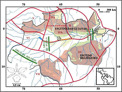 This species is very variable and we can notice that there is a remarkable difference between those which occur in flood banks (Igapó) or in the woodlands (Campinas) next to the borders of the rivers regarding to those which occur in drylands (Campinas da Terra-Firme). The firsts have more vigorous plants and bigger flowers than the last ones. It is important to point out that by the time of the discovery of this species and its varieties, the drylands (terra-firme) was not still opened up by the roads which made it difficult to be reached. In Lindenia, it is inclusively mentioned that the first plants that bloom were from the edges of the Negro River (rio Negro) and in Martii Flora Brasiliensis mentioned that they came from Negro and Urubu rivers. The bloom season of those plants are also different. In the igapó, they bloom from August to October and in the dryland, in general, they bloom from December to February Nowadays, the woodlands (Campinas) next to Manaus have been destroyed and the woodlands (Campinas) that I visited were in dryland (terra-Firme) from 60 to 90 km far from the city limits. That could be the mystery why the varieties referred in the work have been discovered recently. After that, I think that we have two eco-types, which are in process of differentiation or even can be considered as vicariate of two subspecies, however, both population have the same characteristic strong scent. Regarding to the shape of the flowers, it is also very variable and the most part of the flowers does not show a good. Concerning the coloration, the flowers vary from the pale rose to dark rose or white flowers. All Cattleya eldorado have the lip with orange suffused fauce. In general, it is possible to find intermediate forms between the varieties that suggest the hybridization of them in natural conditions. As we know, the flora of the Amazon woodlands (Campinas) is, in a big part, originated from the Guianas Shield . On the other hand, with the retraction of the drylands forest (floresta de terra-firme), during the Pleistocene, the connection between the non-forestal types has been extended. In the Quaternary, the forest spread again propitiating a wide differentiation and the relative isolation between the vegetal typologies, because the detachment is not entirely in the oceanic islands. In Roraima, in the border of Brazil and Venezuela, in Pacaraima mountains, 900 km far from Manaus between de 800-1200 m. s. m. occur two other species in the same groupe of C. eldorado, the group Cattleya labiata Lindley, with unifoliate pseudobulbs. The first, Cattleya jenmanii Rolfe, presents purple color with yellow-orange suffused center of the lip, similar to C. eldorado. The second, Cattleya lawrenceana Rchb. f. has purple flowers and petals suffesed in the edges as some varieties of C. eldorado which have been studied in this work. As the orchids have long distance dispersion of seeds by the wind, we can suppose a possible derivation or hybridization of those species. In any way, those observations need more confirmation and, in the future, they will be a subject of a specific publication. The populational studies of their DNA will be necessary, looking for a better understanding of the evolutive process of the differentiation in this (those) species, to detect possible polyploid, hybridization and or a possible genetic introgression between the mentioned species!? |