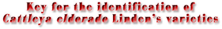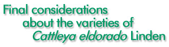 Here, it is just a question of the known varieties of Cattleya eldorado Linden, mentioned in Lindenia and in Martii Flora Brasiliensis, nevertheless I go on with many studies about this species that will be published at the proper time. |
