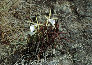 | Promenaea guttata, ovatiloba, stapelioides, xanthina, Prosthechea inversa, kautskyi, vespa, Rodriguezia, Scuticaria, Sophronitella violacea, Sophronitis acuensis, coccinea, brevipedunculata, pygmaea, Stanhopea graveolens, Stelis sp, Zygopetalum brachypetalum, crinitum, intermedium, mackayi, maxillare, pedicellatum, Zygostates multiflora, entre outras (Lista obtida a partir do livro "Brazilian Orchids", Capítulo "Orchid's Map Over the Continent", de Francisco Miranda e "Orchidaceae Brasilienses",de G. J. Pabst e F. Dungs com nomenclatura atualizada). | ![]() Promenaea guttata (foto SA) |
