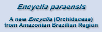 Orchidaceae, Encyclia, Encyclia pachyantha, Encyclia paraensis, Amazon, Brazil, Pará. Abstract: A new Encyclia (section Encyclia), from Amazonian Brazilian Region, is described. This new species of Encyclia grows in the surroundings of Belém City, state of Pará, it has been already known since some time by cultivators in Belém. |