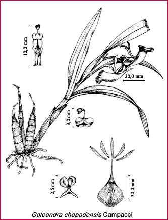 Chaves: Galeandra chapadensis, Chapada dos Veadeiros, Goiás, Die Orchidee, Galeandra curvifolia. |