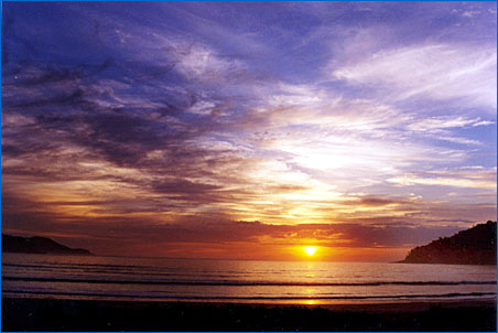 da ilha. A Mata da Jararaca (com 240m de altitude) é uma mata primária, localizada em áreas mais elevadas com poucas intervenções antrópicas e é a mais rica em epífita. Apresentando assim melhor estado de conservação com dossel variando entre 25 e 30m, com muitas árvores com diâmetro de até 1.20m e camada de folhiço profunda de até 120mm. É uma área de acesso restrito, com muitos mananciais que abastecem a Vila, onde só podem entrar pessoas credenciadas com licença da UERJ. A vegetação próxima à região conhecida como Cachoeira da Mãe d’Água foi removida durante a implantação da Colônia Penal para permitir o acesso de veículos. Com a retirada da colônia, há pelo menos 25 anos, esta área iniciou seu processo de regeneração, apresentando, atualmente, uma floresta secundária rica em epífitas, com espécies variando de 12 a 15m de altura. A floresta secundária predomina em regiões como a Parnaióca e o Caxadaço onde o sub-bosque é denso, predominando uma mata com um emaranhado de muitas trepadeiras finas e um número reduzido de epífitas, com exceção de alguns pontos mais para o interior onde podemos encontrar verdadeiros recantos destacando-se uma vegetação muito rica em epífitas caracterizando-se bem floresta ombrófila densa ou Mata Atlântica. Além disto, em muitos pontos da mata, geralmente em direção às praias e cachoeiras, por onde trafegam turistas, encontram-se algumas áreas degredadas invadidas por uma espécie de pteridófita. A Mata do Caxadaço está em regeneração há, aproximadamente 50 anos. ![]() Nascer do sol na Vila Dois Rios |