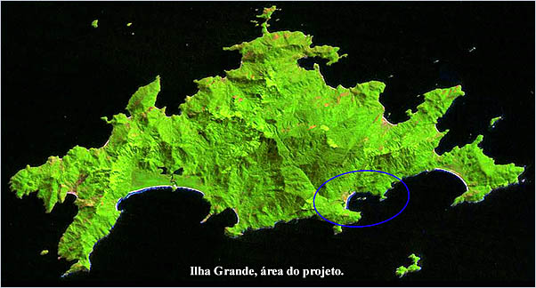 da UERJ. Para a concretização destes objetivos, tornou-se necessário o pleno conhecimento da flora através de coletas e estudos taxonômicos das diversas famílias botânicas que constituem o Parque. A Ilha Grande, localizada no Município de Angra dos Reis, com sua vasta vegetação da Mata Atlântica, é considerada um santuário ecológico e é a maior ilha do estado com cerca de 190km² . O clima da região é quente e úmido, sem estação seca e a temperatura média anual é de 22,5ºC, com a máxima média de 25,7º, em fevereiro e a mínima média de 19,6º, em julho. Seu relevo é acidentado onde se destacam o Pico do Papagaio, a 959m de altitude e Serra do Retiro, a 1031m. Era, primitivamente, totalmente coberta por floresta tropical pluvial (Mata Atlântica) desde o nível do mar até os pontos culminantes. Em função dos diversos ciclos pelos quais passou desde a época colonial (café, cana de açúcar e outros), a vegetação da ilha faceando o continente se encontra em estado de degradação. Os pontos mais altos foram mais preservados por serem mais inacessíveis e a partir destes remanescentes, a vegetação pode se recompor sendo que as matas da vertente sul e do centro geográfico foram melhor preservadas. Apesar de tudo, a ilha representa, hoje, uma das poucas áreas extensas de floresta ombrófila densa do Estado do Rio de Janeiro em diferentes estágios de conservação. É nesta área de confluência entre estas regiões que se localiza do Centro de Estudos Ambientais e Desenvolvimento Sustentável da Universidade do Estado do Rio de Janeiro – CEADS-UERJ, onde o Herbário Bradeanum, em parceria com do Departamento de Biologia Animal e Vegetal, desenvolve o Projeto da Florula da Vila Dois Rios. ![]() Embrapa-Monitoramento por Satélite No lado oceânico da ilha, na face sudeste, em área do Parque Estadual, está localizada a reserva da Vila Dois Rios ladeada pela desembocadura dos rios Barra Grande e Barra Pequena. |