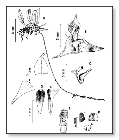 Cited -Borba, E. L., J. Semir & F. Barros. 1998. Bulbophyllum involutum Borba, Semir & F. Barros (Orchidaceae), a new species from the Brazilian ‘‘campos rupestres.’’ Novon 8: 225–229. -Brito, A. L. V. T. 2000. Two new species of Orchidaceae from Brazil. Lindleyana 15(3): 184–188. -Cogniaux, A. 1902. Orchidaceae. Pp. 1–664 in C. F. P. Martius, A. G. Eichler & I. Urban (editors), Flora Brasiliensis . . . , vol. 3, part 5. München, Wien, Leipzig. -Dressler, R. L. 1993. Phylogeny and Classification of the Orchid Family. Cambridge Univ. Press, Cambridge. -Fraga, C. N. 1999. Bulbophyllum gomesii Fraga (Orchidaceae), uma nova espécie da floresta atlântica do Espírito Santo, Brasil. Bradea 8(24): 135–138. -Mori, S. A., B. M. Boom & G. T. Prance. 1981. Distribution patterns and conservation of eastern Brazilian coastal forest tree species. Brittonia 33: 357–370. -Pabst, G. F. J. & F. Dungs. 1975. Orchidaceae Brasiliensis, Vol. I. Kurt Schmersow, Hildesheim. ---- &---- . 1977. Orchidaceae Brasiliensis, Vol. II. Kurt Schmersow, Hildesheim. -Porembski, S., G. Martinelli, R. Ohlemuller & W. Barthlott. 1998. Diversity and ecology of saxicolous vegetation mats on the inselbergs in the Brazilian Atlantic rainforest. Diversity and Distributions 4: 107–119. Photos: Claudio Nicoletti |