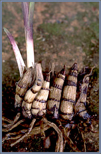 Terrestrial herb. Roots many, whitish, glabrous. Pseudobulbs completely