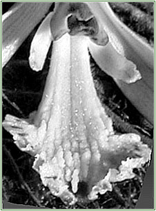 nutantes. Sépalas branco-cremes no interior, geralmente