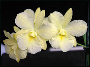 alba x C. bowringiana alba). Há alguns novos híbridos usando o amarelo, uma forma pelórica de Broughtonia sanguinea. Notáveis entre eles estão a Lpna. Hamlyn’s Masterpiece (formas áureas), Ctna. Jamaica