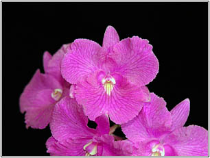 AM/AQ/AOS. Este clone consistentemente produz brotações numa varieddade de cor muito ampla, com pétalas sobrepostas, com pétalas comparativamente largas, labelo grande com forma muito vistosas. Deriva de um grex que foi agraciado com um Award of Quality, e usado, por sua vez, para produzir outro grex que também recebeu um Award of Quality da American Orchid Society.