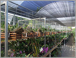 MVN: Não há e não vejo nenhum segredo no meu cultivo, as condições climáticas do meu local de cultivo podem ser assim descritas. Clima mesotérmico úmido, sendo normal o regime das chuvas e as temperaturas variam entre 10 º C (no inverno) e 30 º C, em média. Meu orquidário pode ser considerado uma semi-estufa, pois as paredes laterais são formadas por sombrite com 50% na cor preta. A altura total (primeiro pé direito) é de 5 metros onde está instalada a cobertura final em forma de semi-arco, coberta com plástico semi-leitoso para filtrar os raios solares. A 3 metros (2º pé direito) do piso do orquidário foi colocado um sombrite com 70% na cor preta, cobrindo toda área. O piso do orquidário é formado por brita 3/4.