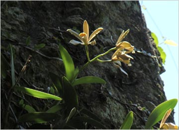 Ele, há anos, acompanha de binóculo esta touceira única de Cattleya forbesii, na face sul do morro do Pão-de-Açúcar, numa escarpa rochosa vertical, voltada para oeste, junto à mata. Ela está localizada a mais ou menos 9 metros de altura, do ponto de observação. Cauteloso, tinha medo de revelar sua localização exata e descobrir, posteriormente, que alguém correu para coletá-la. No entanto, resolveu dividir conosco esta descoberta, à condição que não fosse revelada a localização exata. Mas, ele já está mais tranqüilo, pois constatou que a planta é muito cultivada em orquidários, custa bem barato, e, por isso, não há mais razão em ser coletada na natureza. Qualquer um pode cultivá-la em casa, comprando uma planta saudável e já adaptada ao vaso. E, as que resistem na natureza, podem ficar lá, e ter a beleza de suas flores admirada no seu ambiente, ano após ano. |