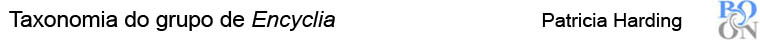 O grupo de plantas englobadas neste trabalho está inserido na subtribo Laeliinae. Elas pertencem a um grupo de espécies que, originalmente, eram conhecidas como Epidendrum e, depois, como Encyclia. Encyclia, em seu conceito antigo, foi dividida em outros gêneros. Este trabalho aborda as características físicas de alguns destes gêneros propostos, com ilustrações destas características e muitas fotografias das espécies para enfatizar as similaridades e as diferenças. Epidendrum são plantas de caules tipo caniço com pouco ou nenhum pseudobulbo e a coluna é fundida com o labelo em todo seu comprimento formando um tubo. Seus frutos são redondos. Encyclia tem pseudobulbos heteroblásticos arredondados (alargados somente junto a um entrenó), as folhas são rígidas, não tem bainha evidente na inflorescência e seus frutos são ovais ou circulares nas secções cruzadas e, o mais marcante, o labelo é livre da coluna, não é fundido como o Epidendrum e não tem dentes no ápice da coluna circundando a antera. Muitas espécies originalmente classificadas como Encyclia e que ainda são Encyclia, em seu sentido original, têm muitos traços que fazem com que o "encaixe" seja desconfortável. |