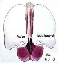 and frontal lobes, strongly mimicking the shape of the lip. It includes