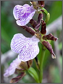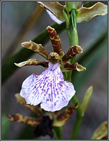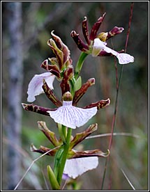 Narrower or longer lateral lobes, a callus of the lip more robust, sepals