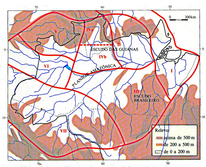 Brasileiro no Brasil Central ao sul e o Escudo das Guianas ao norte da Amazônia.