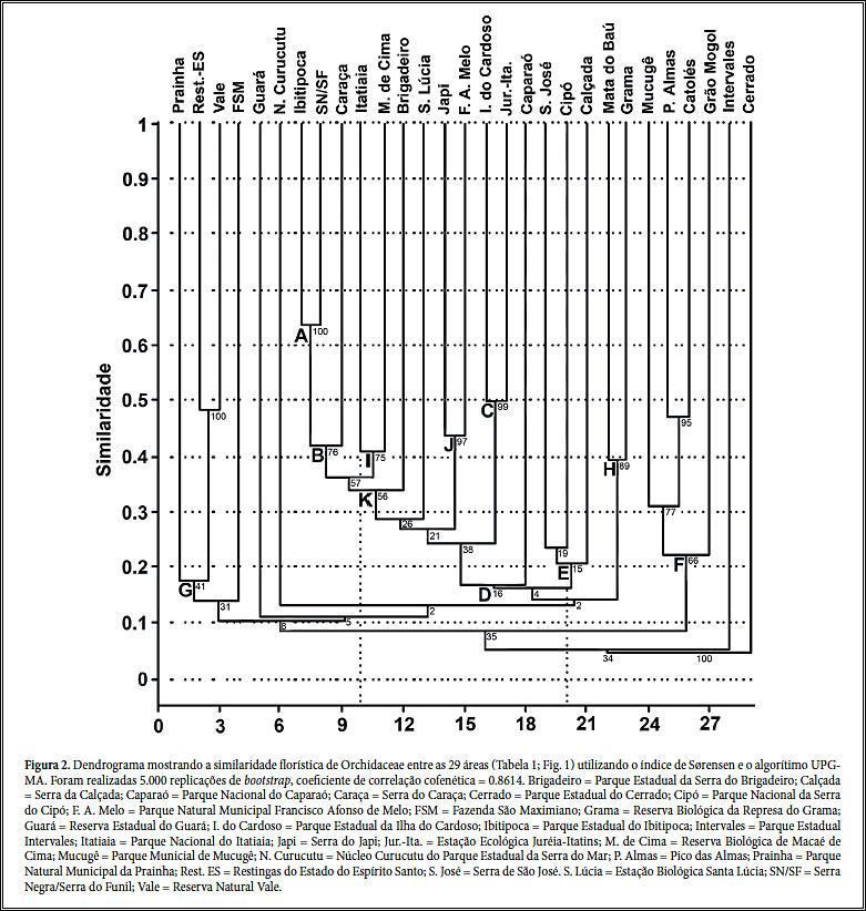 a similaridade florística de Orchidaceae, resultado semelhante ao encontrado