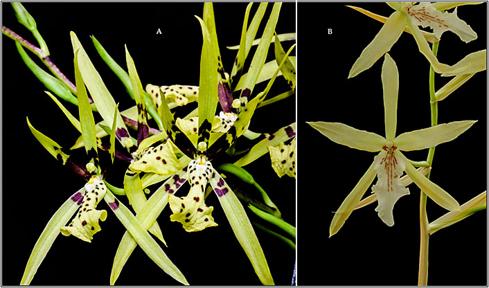 Brassia arachnoidea Barbosa Rodrigues [A] e Miltonia flavescens Lindley [B]