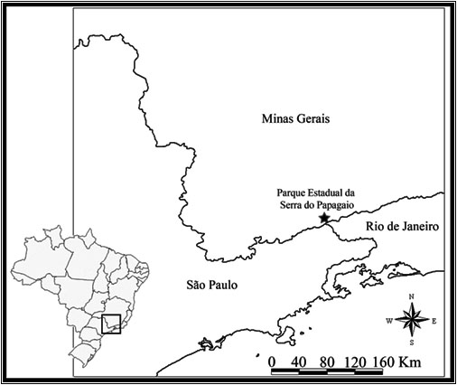 O PESP faz parte do Complexo da Mantiqueira, interligando-se ao sul com o Parque Nacional do Itatiaia, na divisa com o estado do Rio de Janeiro. Compreende ca 22.917 ha, entre os municípios de Aiuruoca, Alagoa, Baependi, Itamonte e Pouso Alto (Figura 1) e resguarda importante remanescente da Floresta Atlântica, com mosaicos compostos por fragmentos altomontanos de Floresta Ombrófila Densa (FOD) e Floresta Ombrófila Mista (com a presença de Araucaria angustifolia (Bertol.) Kuntze (Araucariaceae), o Pinheiro do Paraná e Podocarpus lambertii Klotzsch ex Endl. (Podocarpaceae), conhecido popularmente como Pinheiro-bravo) entremeados ao campo de altitude, entre 1500 e 2300 m.s.m.