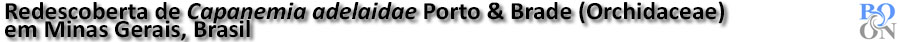 Capanemia adelaidae Porto & Brade é endêmica do Brasil e tem distribuição referida para os estados do Rio Grande do Sul, Santa Catarina, Paraná, São Paulo (Pabst & Dungs, 1977) e Rio de Janeiro (Pabst, 1972) e, embora não seja citada para Minas Gerais por Buzatto et al. (2010) e Barros et al. (2013), há uma única coleta realizada por Alexander Curt Brade (RB 19060) em 1948, proveniente do município de Passa Quatro, depositada no Herbário Dimitri Sucre Benjamin, do Jardim Botânico do Rio de Janeiro.