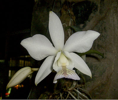 Cattleya nobilior alba, muito rara, é totalmente branca e de difícil reprodução.