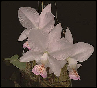 Cattleya nobilior semi-alba, tem pétalas e sépalas brancas e o labelo em um dos tons escuros, é raríssima.
