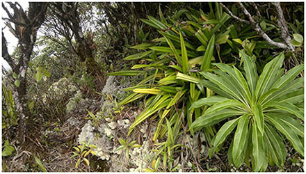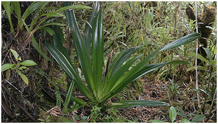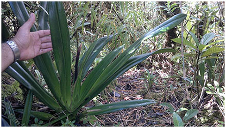 Máximo de 120 cm de raio de leque das folhas em cada fascículo adulto florido. |