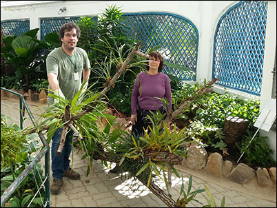 Em um outro estão instalados Epidendrum e Encyclia mostrando a diversidade do grupo.