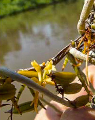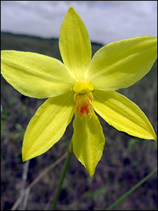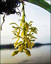 -EP: É uma planta terrícola belíssima, com flores amarelo vivo! Duckeella é um gênero raro com ocorrência em áreas abertas da Amazônia e sem flores passa despercebido, pois não parece uma orquídea. Talvez por isso tenha poucas coletas. |