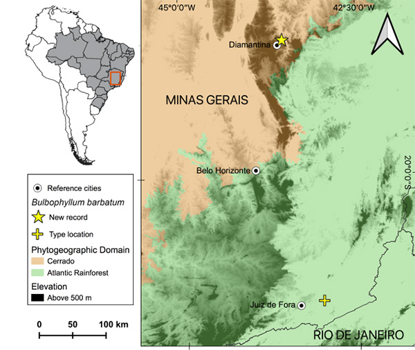 Mapa de distribuição de Bulbophyllum barbatum in Minas Gerais, SE Brasil