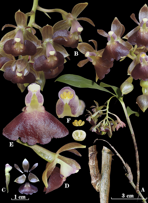 Epidendrum bothryanthum M.R.Miranda et al. Uma das muitas espécies da aliança do grupo do Epidendrum proligerum, plantas cujos caules se ramificam sucessivamente formando novas brotações e inflorescências. |