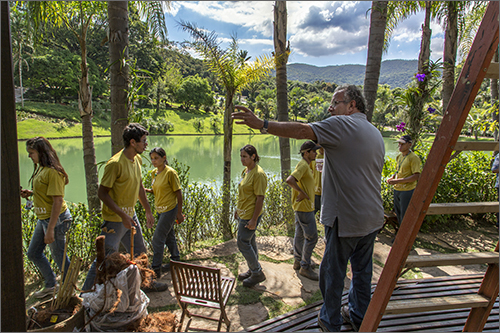 Ele coordenava todo o processo, desde a retirada de um pequeno mato até a colocação de uma palmeira de 25 metros de altura e de uma pedra de 5 toneladas, alternando os ângulos e inclinações, mesmo depois de instaladas. A escala é imensa, mas o detalhismo na composição da paisagem é igualmente proporcional, com profundidade de cores e de movimento.