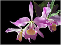 Sépalas e pétalas rosadas; Labelo rosa escuro com a fauce maculada de amarelo-alaranjado; lóbulo apical e parte dos laterais roxo-escuros. | |
