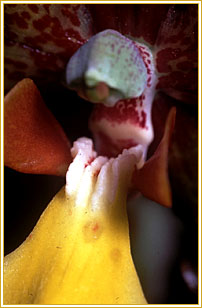 alaranjado, bordas laterais amareladas. Coluna ereta, ligeiramente