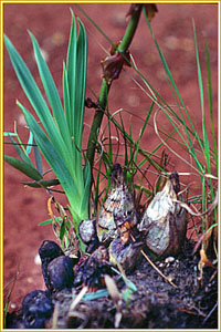 Erva terrestre. Pseudobulbos expostos ou, ocasionalmente, parcialmente