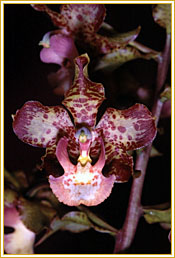 1.9-4.7 cm de compr., marrom-esverdeado. Flores 10-15, vistosas,