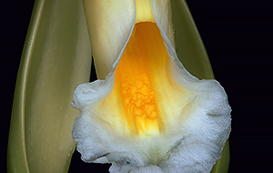 As flores são de um amarelo esverdeado pálido, ligeiramente semelhante ao colorido das folhas, e abrem uma a uma, com intervalos de aproximadamente dois dias entre elas.