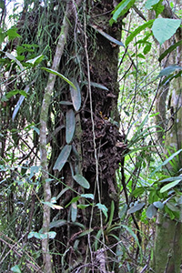 Em característica comum às três espécies, apresenta raízes no solo, de cerca de até 50cm de comprimento por 0,4-0,5cm de diâmetro, e também um sistema radical epifítico, com raízes curtas dispostas opostamente a cada folha, alternadamente, fixando a trepadeira nos troncos ou rochas onde cresce.