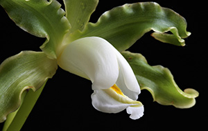 O labelo é mais tubular e alongado que os das outras duas espécies e tem as margens encrespadas. É branco e ligeiramente translúcido, com o disco amarelo-ouro, com verrucosidades variadas na faixa central e, próximo à base, pequenas cristas.