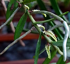 Also very relevant for the composition of the current collection of the nursery was the anonymous donation of an orchidophile residing in Juiz de Fora, at the end of 2021, with several hybrids of intense and varied colors, species of Cattleya (such as C. amethystoglossa, C. guttata, C. intermedia and C. walkeriana), several species of Bulbophyllum (such as B. frostii and especially the singular B. medusae), Dichaea pendula, Hoffmannseggella milleri, Isabelia virginalis, Octomeria diaphana, in addition to the very interesting Angraecum sesquipedale , the well-known “Darwin's orchid”.